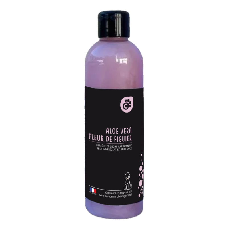 Grâce aux vertus hydratantes et protectrices de l'Aloe Vera, ce soin de toilettage assure un nettoyage respectueux de la peau. L'Aloe Vera contribue à apaiser l'épiderme et à redonner de l'éclat au poil, tandis que le parfum délicat de Fleur de Figuier laisse une senteur fraîche et durable sur l'animal. Formule conforme aux normes cosmétiques européennes pour une sécurité optimale.
