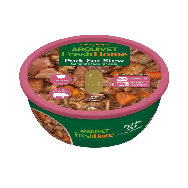 Le Ragoût d'oreilles de porc / FreshHome d'Arquivet est une nourriture humide complète pour chien, préparée selon une recette maison authentique.