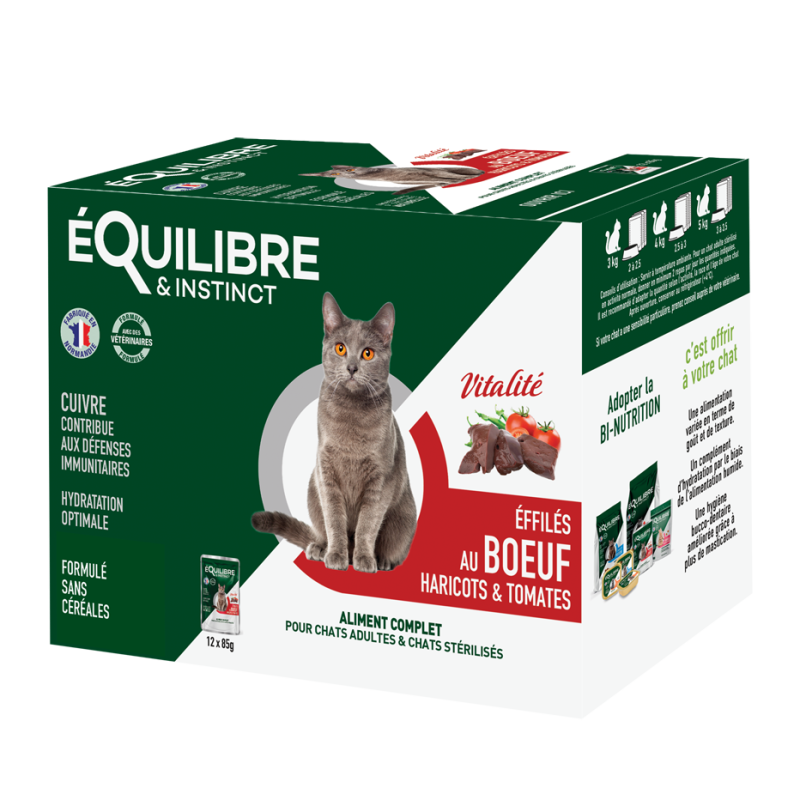 Équilibre & Instinct - Effilés Bœuf, Haricots verts & Tomates - Chat Stérilisé (12x85g)