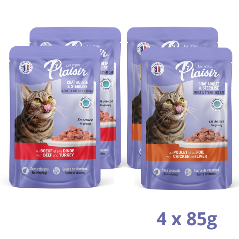 Les Repas Plaisir - Pack Découverte Émincés Poulet & Bœuf - Chat Stérilisé (4x85g)