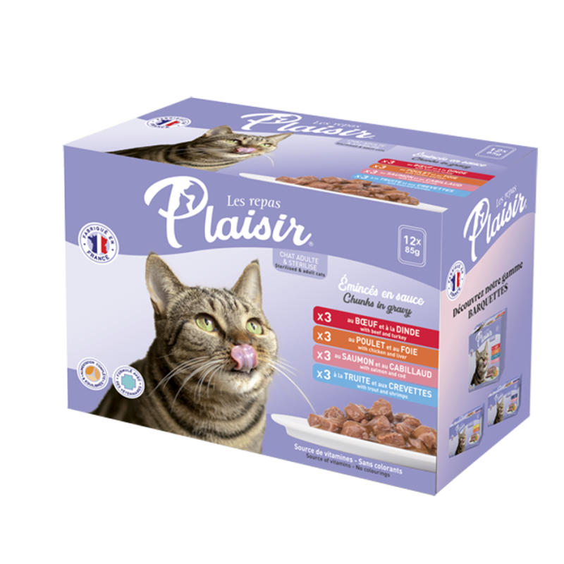 Les Repas Plaisir - Pack d'émincés Multisaveurs - Chat Stérilisé (x12)