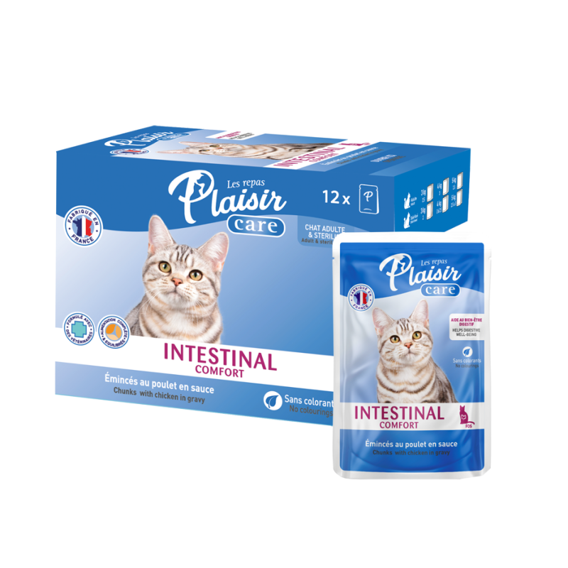 Les Émincés Chat Adulte Intestinal Comfort des Repas Plaisir sont un aliment humide complet pour chats adultes et stérilisés, formulé pour favoriser le confort digestif et l’équilibre intestinal grâce à des ingrédients spécifiques.