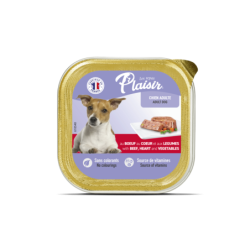 La Pâtée Plaisir au Bœuf, Cœur et aux Légumes est un aliment complet et gourmand destiné aux chiens adultes. Sa formule combine une base de viandes avec du bœuf et du cœur, pour une haute appétence, y compris chez les chiens difficiles. Sa texture moelleuse en fait un repas facile à consommer au quotidien.