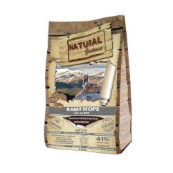 Natural Greatness Rabbit Formula associe viande de lapin, ingrédients végétaux, prébiotiques, glucosamine et chondroïtine. Une recette sans gluten destinée aux chiens adultes recherchant une alimentation complète et savoureuse.