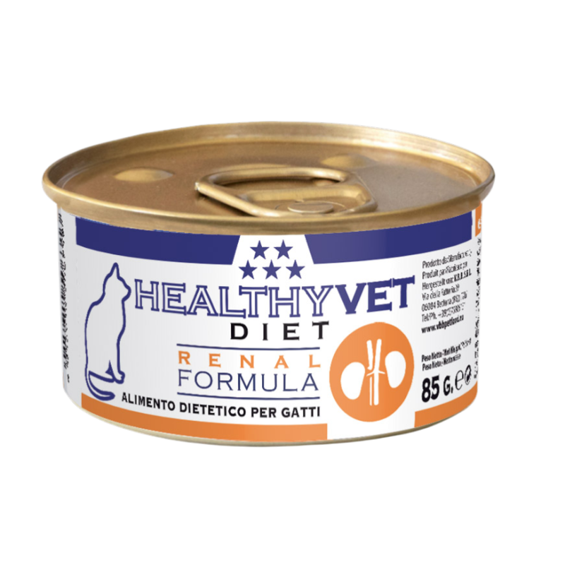 Aliment diététique complet (85 g) pour chats, formulé pour soutenir la fonction rénale en cas d'insuffisance chronique ou temporaire. Recette très appétente, avec une faible teneur en phosphore, des protéines de haute qualité et enrichie en huile de poisson (Oméga-3).
