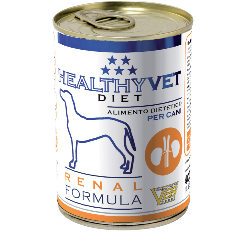 Aliment diététique complet (400 g) pour chiens, formulé pour le soutien de la fonction rénale en cas d'insuffisance rénale chronique ou temporaire. Recette à teneur modérée en protéines (4,5 %).