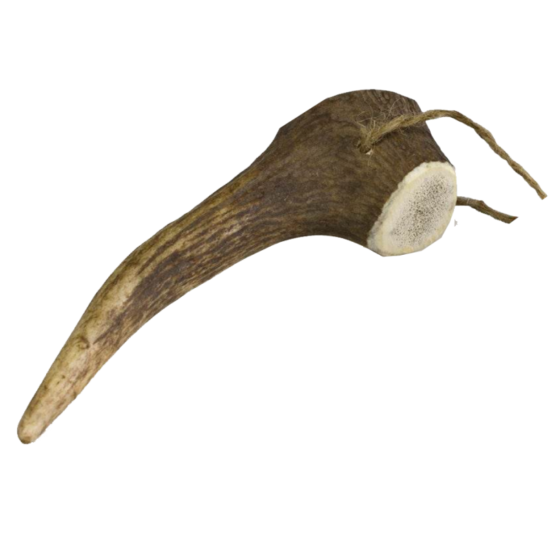 Bois de cerf issus de la mue naturelle du printemps. Récoltés en forêt, ils sont nettoyés à l'eau uniquement, coupés et poncés. Aucun produit chimique n'est utilisé.