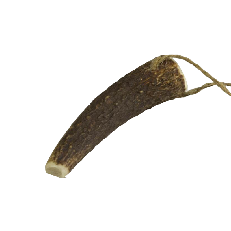 Bois de cerf issus de la mue naturelle du printemps. Récoltés en forêt, ils sont nettoyés à l'eau uniquement, coupés et poncés. Aucun produit chimique n'est utilisé.
